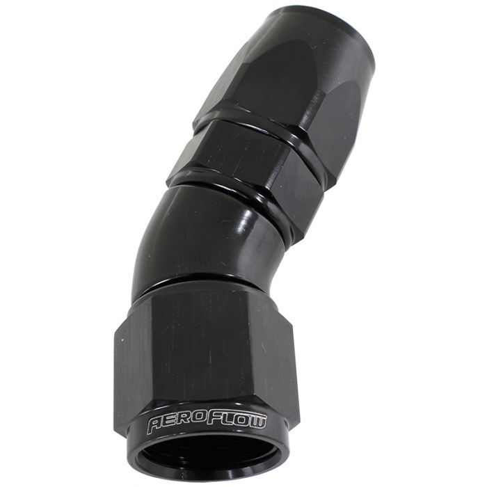 Aeroflow's 570 Series PTFE fittings are a CNC machined one piece fitting which provides uninterrupted flow. The purpose designed olive compresses into the PTFE (Teflon®) inner tube for easy, leak free assembly. The mandrel bent tight radius body has superior wall thickness and a swivel head allowing for easy adjustment. Aeroflow's 570 series fittings are the choice of professionals for use in power steering, automatic transmission, nitrous, fuel systems, cooling systems, vacuum applications, oil systems, brake and clutch lines. Compatible Hose: 200 Series Stainless Steel braid and 250 Series Nylon braid PTFE (Teflon®) hose.