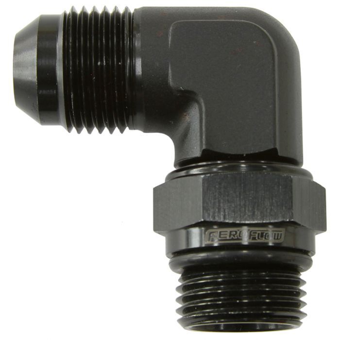Male to Male full flow ORB to AN adapter. Adapt from an ORB thread to AN flare with a 90 degree bend and full 360 degree swivel. Various sizes available.