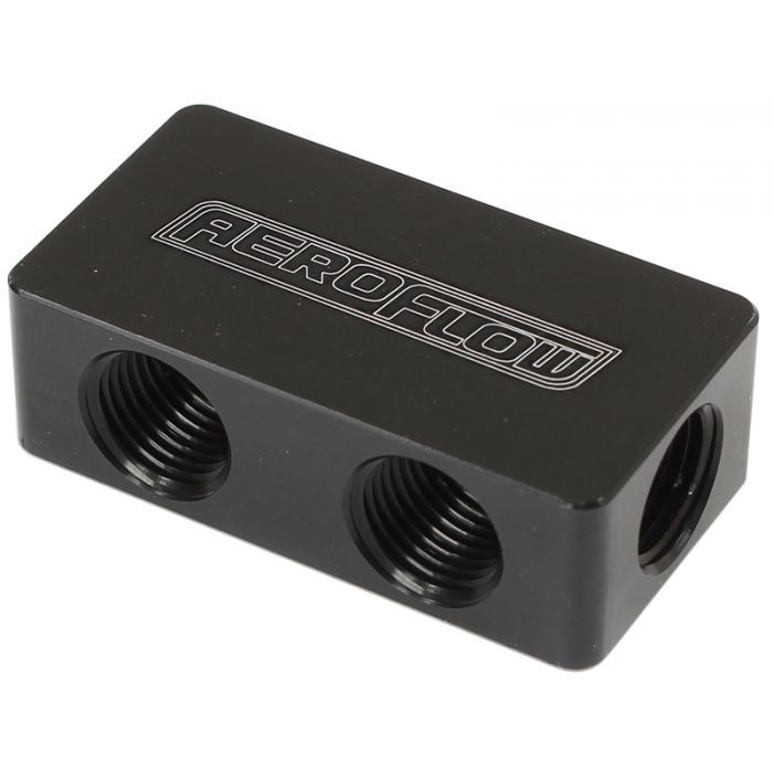 Aeroflow Performance has designed these compact distribution blocks for universal applications. Such as a vacuum block distribution to plumb up additional vacuum ports for accessories like MAP sensors, boost gauges, blow off valves, or hooking up individual throttle bodies. Coolant lines for header tanks or LS steam pipe lines and nitrous oxide lines. Available with 1 port in and 4 ports out and 1 port in and 6 ports out, these ports are all 1/8" NPT. The compact design measures just 60mm length, 35mm width and 12.70mm thickness and comes in blue, black and silver colour options.