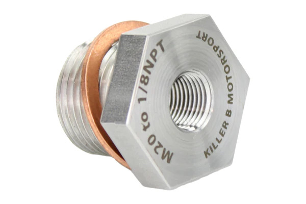 Our M20 x 1.5 to 1/8NPT Adapter will allow the use of aftermarket temperature sensors that have 1/8NPT threads. Our aftermarket oil pan includes one OEM plug port, that can be used with this adapter, and a 1/2NPT port. This adapter can also be used with OEM oil pans. Measure the oil temperature where it should be, in the pan!